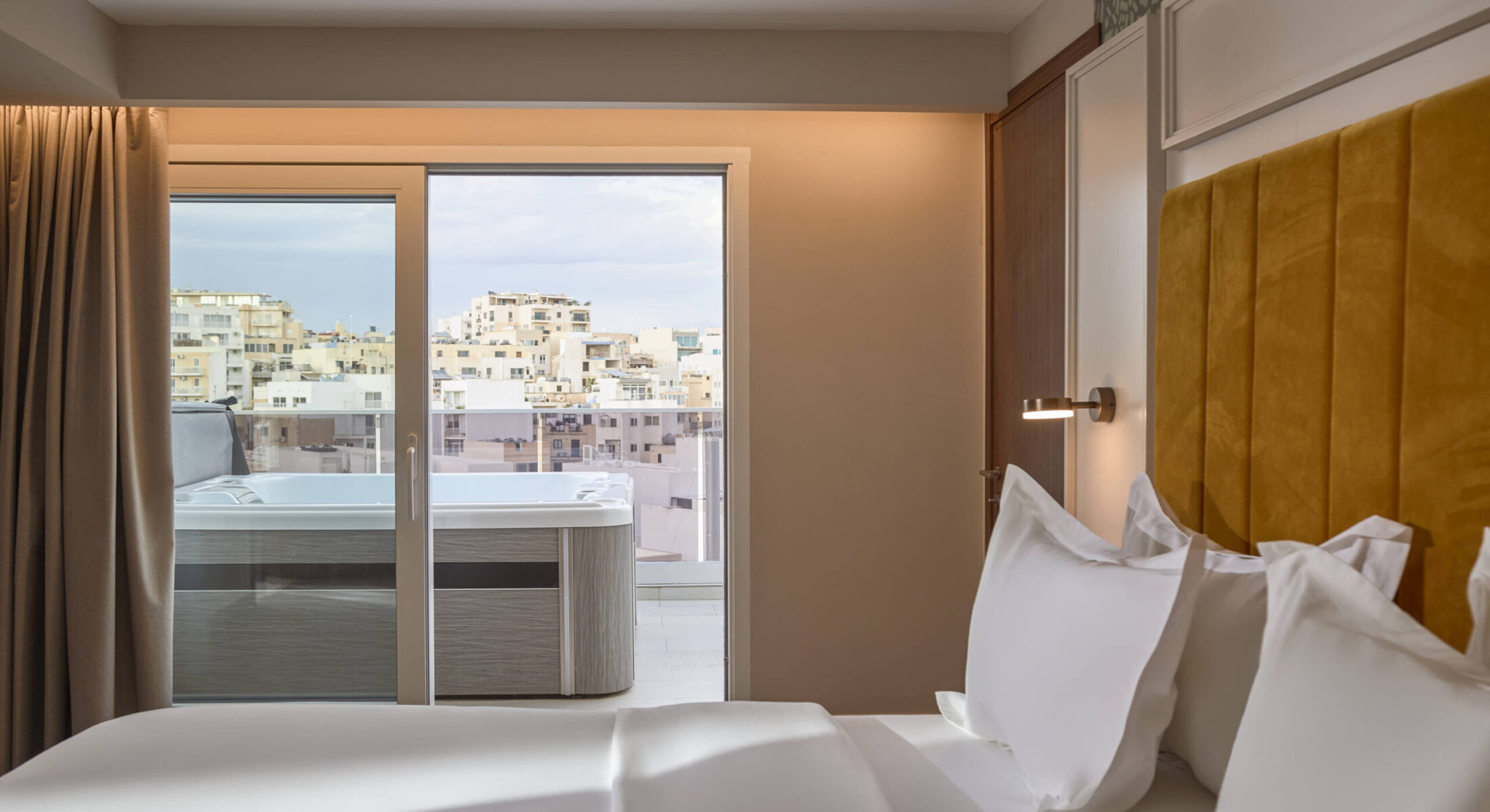 Inside, you’ll find a business desk, flat-screen satellite TV, high-speed Wi-Fi, a minibar, and tea and coffee facilities. For added comfort, the suite includes air conditioning, soundproofing, a safe, and an iron with ironing board. The bathroom features a fixed showerhead, bathtub, jacuzzi, bathrobe, and slippers. The Suite with Balcony combines space and practicality in the heart of Malta.