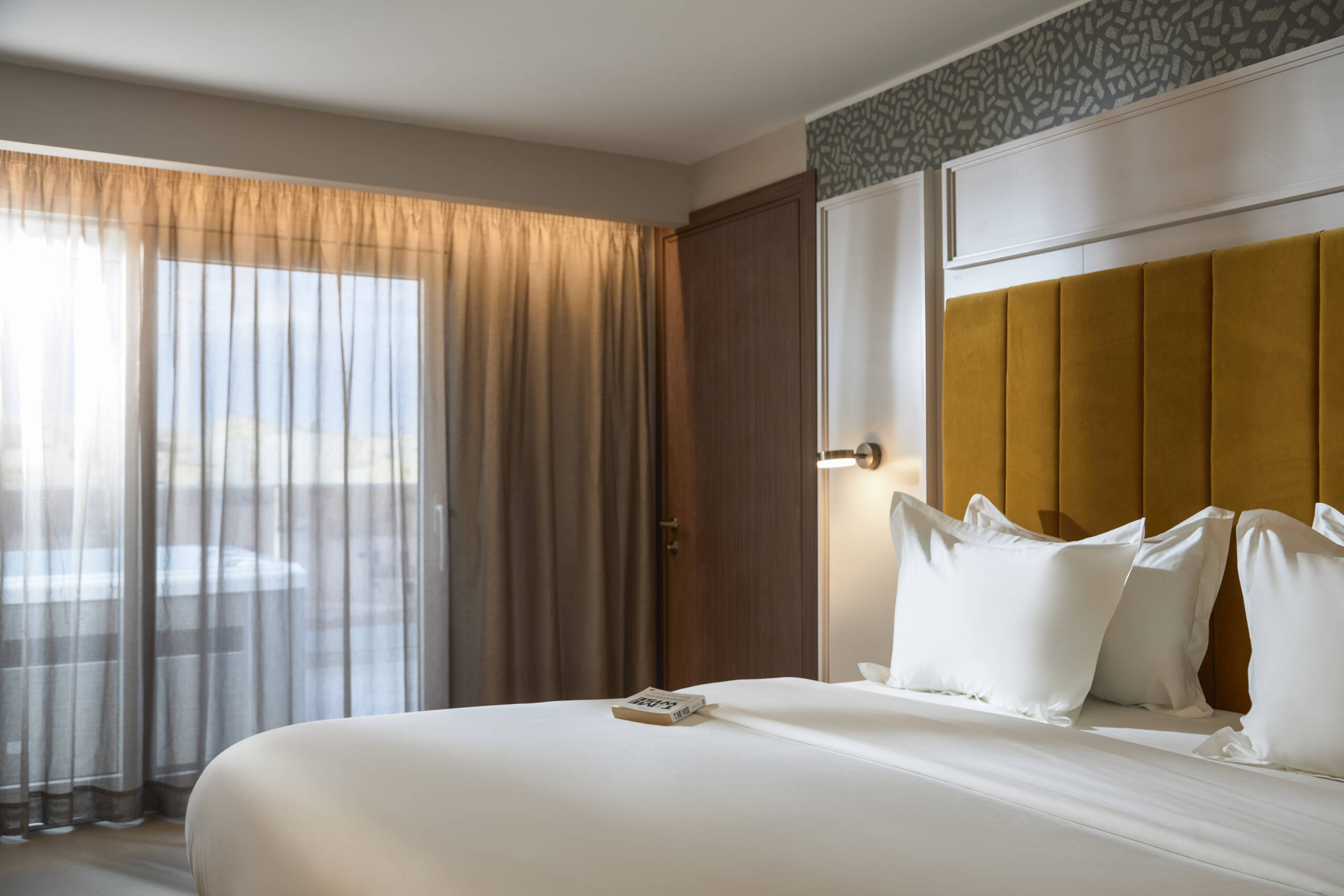 Our Suite with Balcony offers a comfortable and refined setting, perfect for longer stays, business trips, or quiet escapes. Featuring a double bed and sofa bed, the suite includes a spacious seating area and a private balcony with city views.